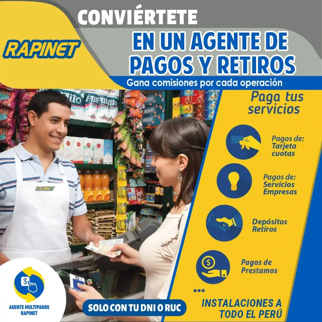 Los Agentes Rapinet son negocios que pueden realizar transferencias de datos financieros de una o más entidades financieras a las que están afiliados.